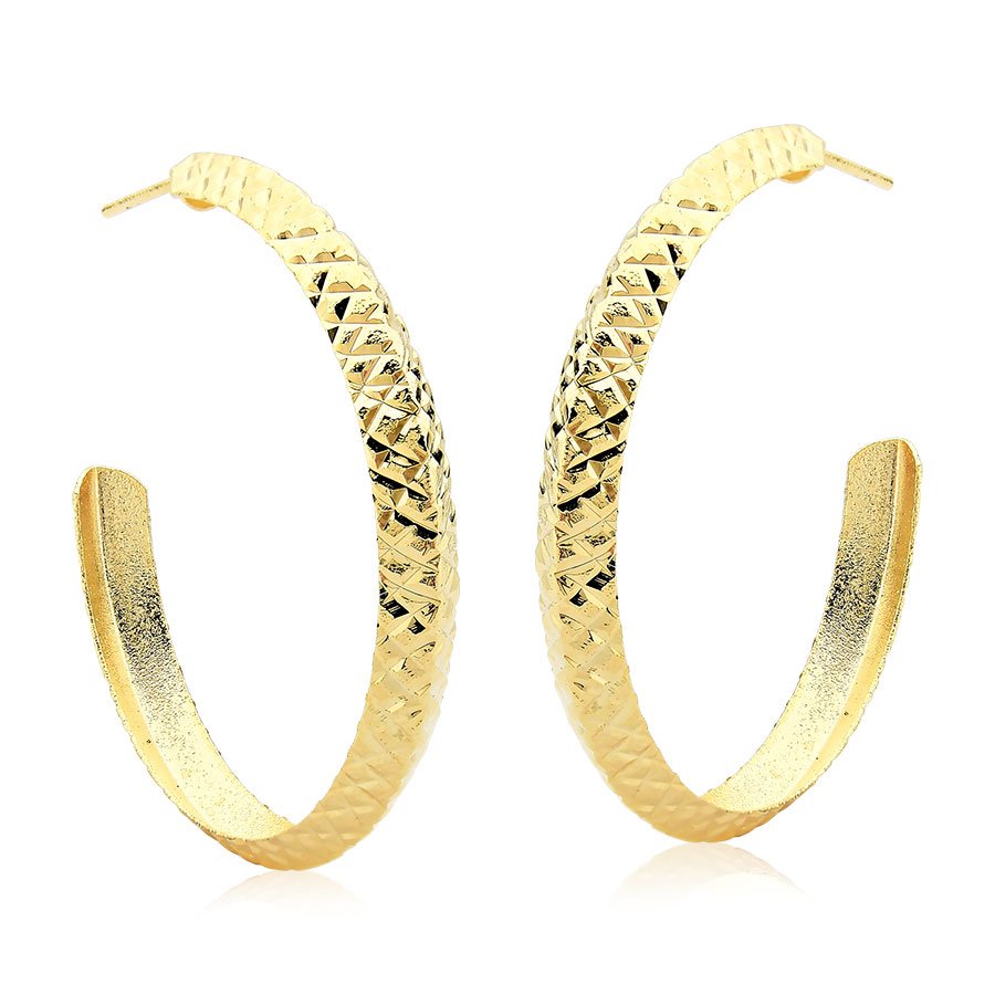 Argola diamantada grande banhada a ouro 18k, uma peça imponente que combina o brilho dos diamantes com a sofisticação do ouro. Seu design luxuoso e marcante é perfeito para quem deseja um acessório que realmente se destaque e complemente qualquer look com elegância.Com 4 cm de diâmetro e largura de 5 mm, a argola apresenta um tamanho maior, ideal para quem busca uma peça de maior presença. Seu tamanho generoso a torna perfeita para ocasiões especiais ou para quem gosta de acessórios mais ousados e chamativos.