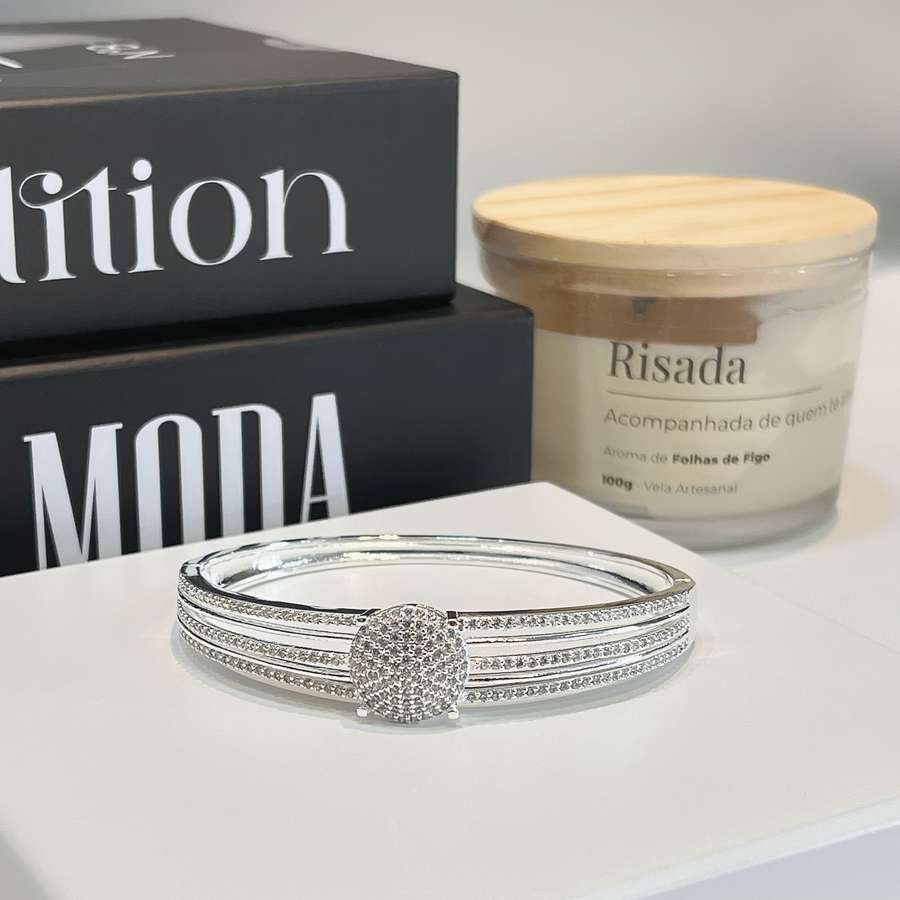 O Bracelete Cravejado Banhado a Prata é a definição de brilho e sofisticação. Com pedras delicadamente aplicadas, ele transforma qualquer produção, trazendo um toque de luxo e elegância ao visual.Com 7 cm de diâmetro, esse bracelete oferece um encaixe confortável e presença marcante no pulso. É uma joia que se destaca sozinha ou combinada com outras peças.