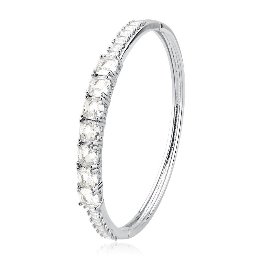 O bracelete cravejado de zircônia cristal banhado a ouro branco é sinônimo de elegância e sofisticação.Com 6cm de circunferência e acabamento impecável, essa joia reflete luxo e modernidade, encantando clientes que valorizam brilho e exclusividade.