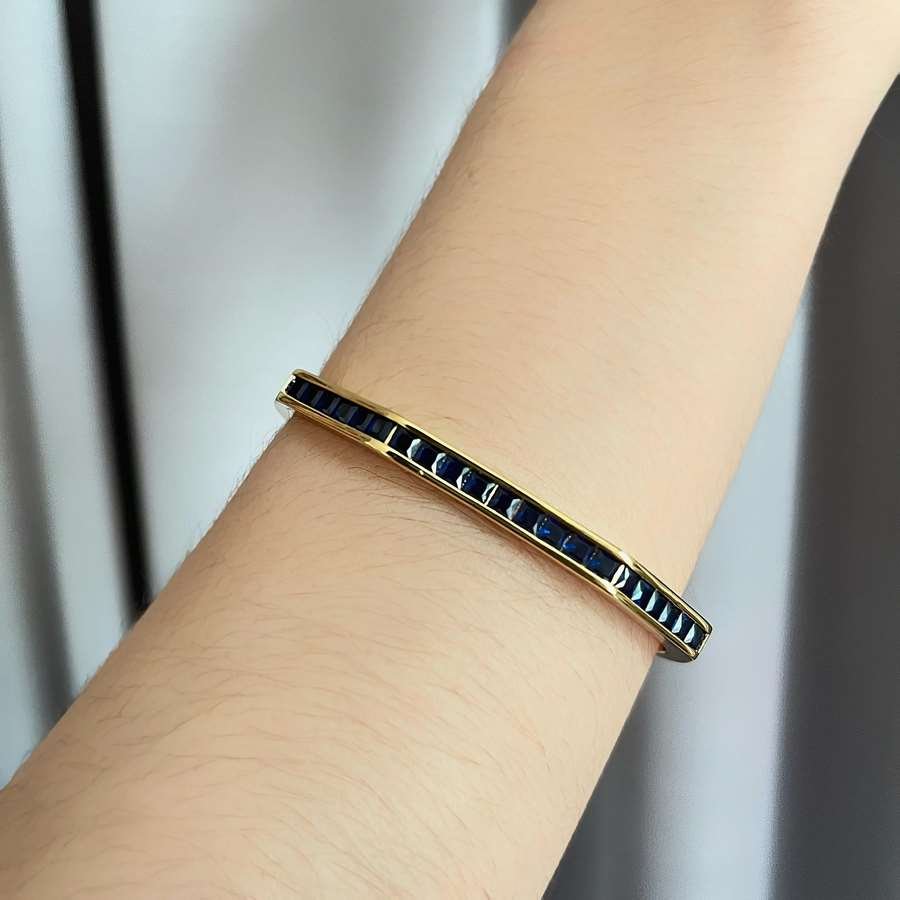 Este bracelete de zircônia azul banhado a ouro 18k é uma verdadeira obra de arte, com o brilho vibrante da zircônia azul que se destaca contra o dourado do ouro, criando um visual sofisticado e elegante.Com 6,5 cm de diâmetro, o bracelete tem o tamanho ideal para se ajustar confortavelmente ao pulso, trazendo um toque de requinte e glamour para o seu estilo diário ou para eventos especiais.