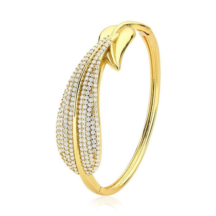 O design distinto deste bracelete apresenta uma combinação harmoniosa de folhas lisas e cravejadas de zircônias, criando uma estética deslumbrante que certamente chamará a atenção. A abertura ajustável permite um ajuste confortável ao pulso, enquanto o banho de ouro 18k adiciona um toque de sofisticação e glamour.