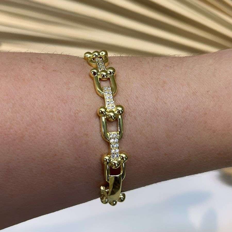 Este bracelete liso e com detalhes cravejados, banhado a ouro 18k, combina a elegância do design minimalista com o luxo das pedras, tornando-se uma peça essencial para quem busca sofisticação.Com 6 cm de diâmetro, o bracelete foi projetado para um encaixe perfeito, proporcionando um ajuste confortável e agradável durante todo o dia.