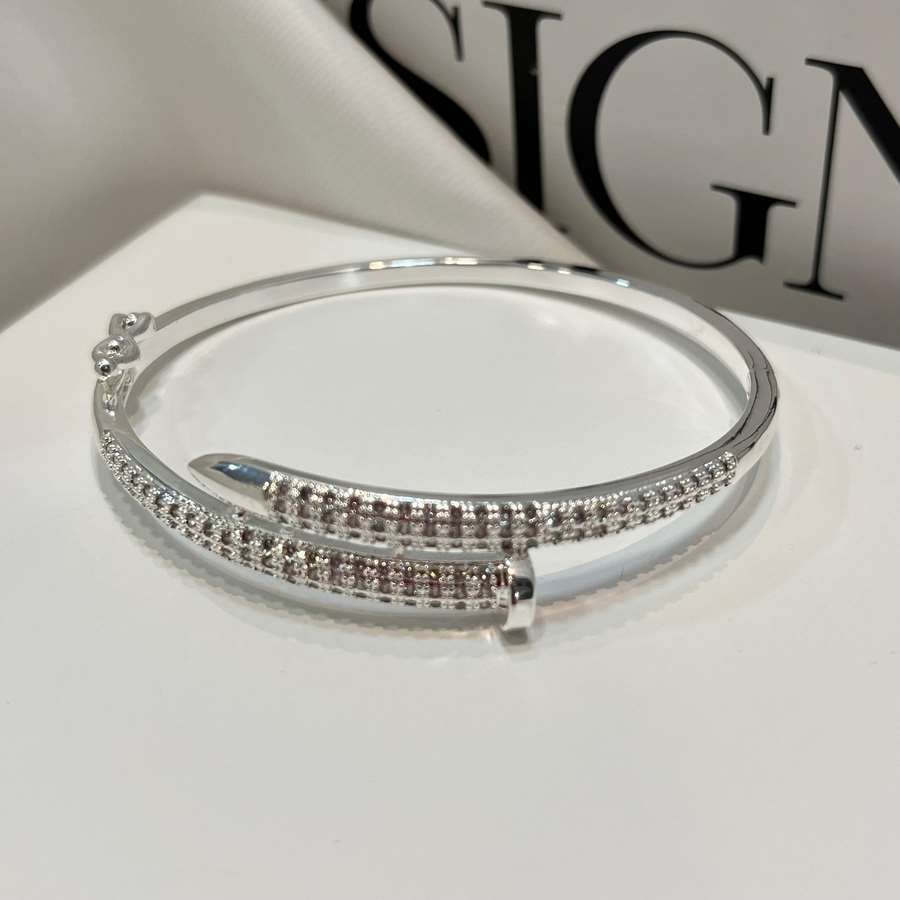 O bracelete prego cravejado banhado a prata traz uma proposta ousada e sofisticada, combinando design moderno com o brilho delicado das pedras cravejadas. Uma joia que representa atitude com elegância.Com 6cm de diâmetro, ele se ajusta perfeitamente ao pulso, garantindo conforto durante o uso e realçando o visual com um toque de estilo urbano e refinado.