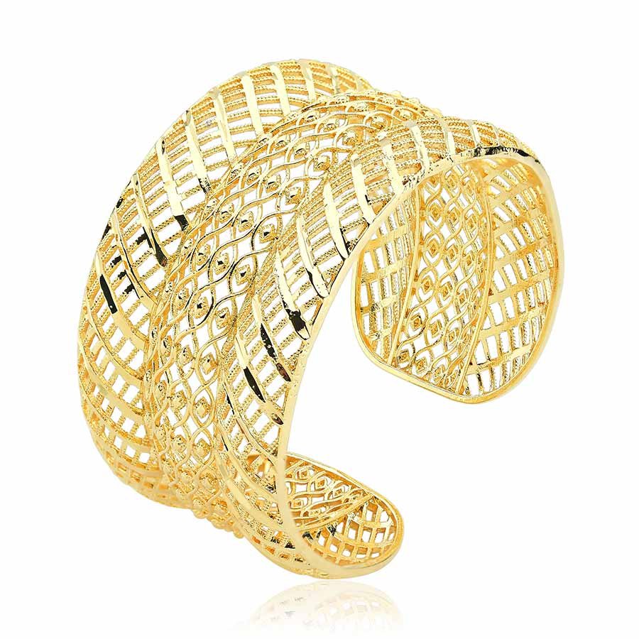 Este bracelete regulável diamantado, banhado a ouro 18k, é uma peça deslumbrante que exala sofisticação. Seu design refinado e o acabamento brilhante proporcionam um toque de luxo ao visual, tornando-o perfeito para quem aprecia elegância.Com 6cm de diâmetro e largura de 3,5cm, a peça tem um tamanho ideal para um ajuste confortável e firme, sendo regulável para se adaptar facilmente a diferentes tamanhos de pulso.