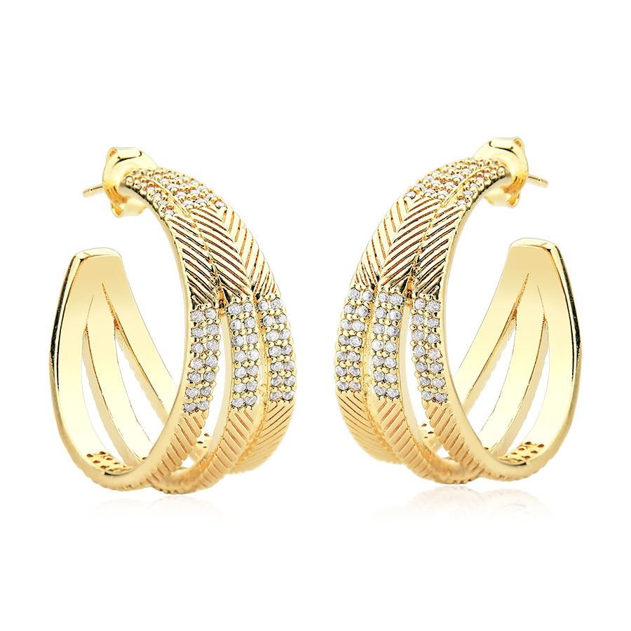 Encante-se com a sofisticação dos brincos de argola com zircônia banhados a ouro 18k. Cada peça é desenhada para destacar sua beleza, com o brilho das zircônias realçando o ouro reluzente, perfeito para qualquer ocasião.Com um tamanho de 2,5 cm e largura de 1,2 cm, essas argolas oferecem um visual elegante e moderno. O design atemporal torna esses brincos uma escolha versátil que complementa qualquer estilo.