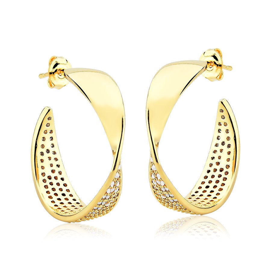 Adicione um toque de brilho e elegância ao seu visual com o Brinco argola cravejada de zircônias banhado a ouro 18K. Esta peça é uma escolha perfeita para quem busca estilo e sofisticação.