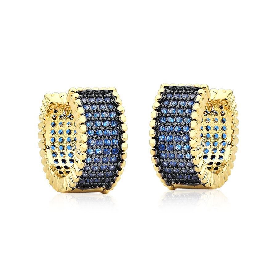 Brinco argolinha de zircônia azul banhado a ouro 18k, uma peça que combina o brilho intenso da zircônia azul com a sofisticação do ouro. Seu design delicado e a cor vibrante das pedras fazem dele o acessório perfeito para adicionar um toque de cor e elegância ao visual.Com 1,2 cm de diâmetro e largura de 5 mm, o brinco tem um tamanho ideal para quem procura uma peça sutil, mas com presença. Suas proporções equilibradas oferecem um visual moderno e clássico ao mesmo tempo, perfeito para qualquer ocasião.