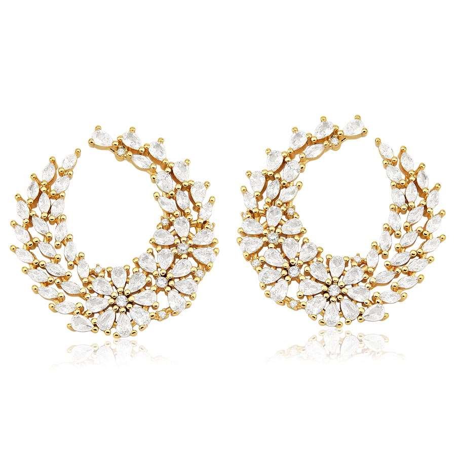 Brinco com pedras cristal e zircônia banhado a ouro 18K de 2,8cm, uma joia elegante que combina brilho intenso e sofisticação em um design delicado e moderno. Ideal para clientes que buscam acessórios femininos versáteis e charmosos, perfeitos para o dia a dia ou ocasiões especiais.Características: