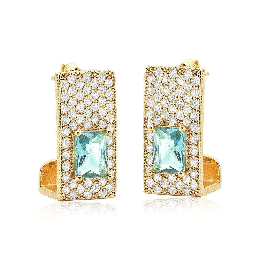 Este brinco cravejado com pedra acqua e banhado a ouro 18k é uma peça que transmite delicadeza e elegância. A tonalidade suave da pedra acqua se destaca perfeitamente contra o brilho dourado do ouro 18k, criando uma combinação que é ao mesmo tempo sofisticada e moderna.Com 2 cm de altura e 1 cm de largura, ele é ideal para quem deseja um brinco de presença, mas sem exageros. O tamanho é perfeito para complementar qualquer look, adicionando um toque de glamour sem perder a suavidade.