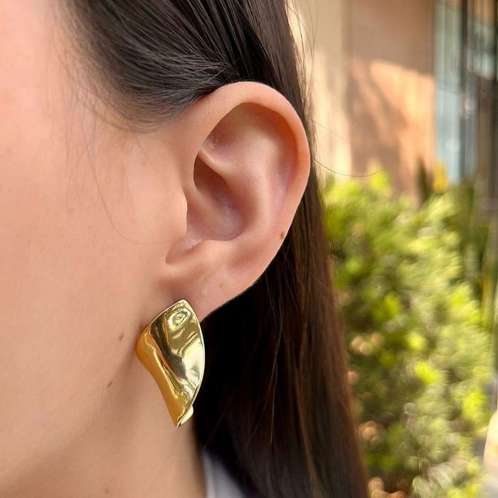 Brinco torcido liso banhado a ouro 18K, com 3,3cm, é uma joia moderna e sofisticada que valoriza qualquer produção.Ideal para revendedoras que buscam oferecer peças versáteis, com design diferenciado e alto valor percebido pelas clientes.