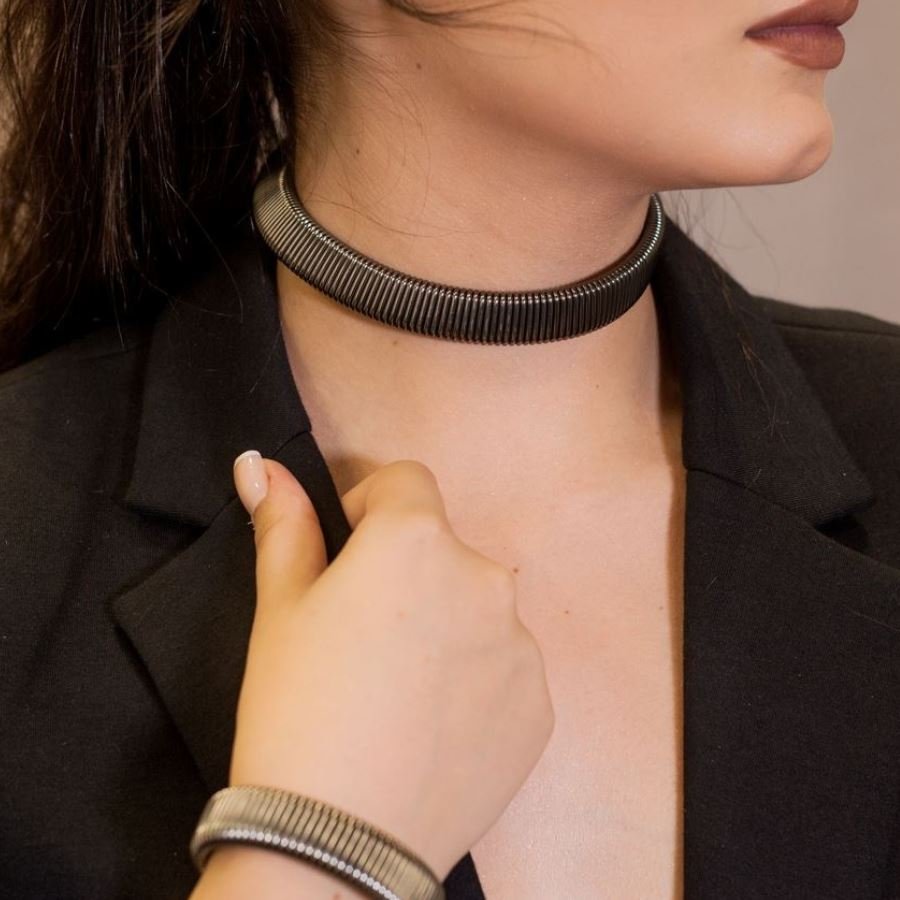 Conheça a choker grafite, um acessório que exala elegância e modernidade, perfeito para qualquer ocasião.Medindo 34cm, com um extensor adicional de 5cm, esta peça se ajusta perfeitamente ao seu pescoço, proporcionando um uso confortável e seguro.