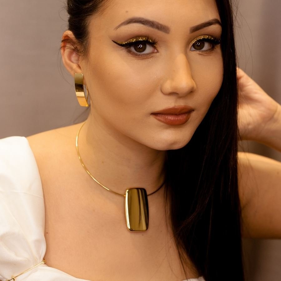 Descubra a sofisticação do nosso colar aro com pingente liso banhado a ouro 18k. Este acessório elegante é perfeito para adicionar um toque de luxo ao seu estilo.Com um diâmetro de 12 cm, um extensor de 5 cm e um pingente de 5,0x3,0 cm, este colar combina um design moderno com a possibilidade de ajustes, garantindo um encaixe perfeito e confortável.