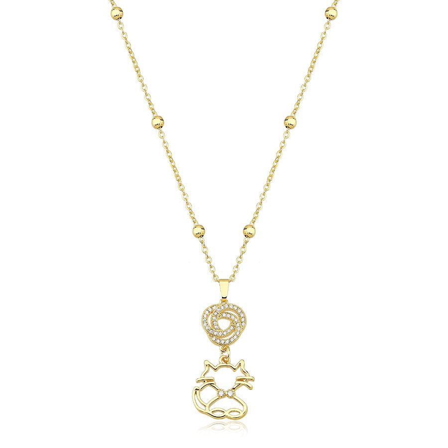 Celebre sua paixão pelos felinos com elegância usando o Colar Corrente Bolinhas Pet Gato Cravejado Banhado a Ouro 18K.
