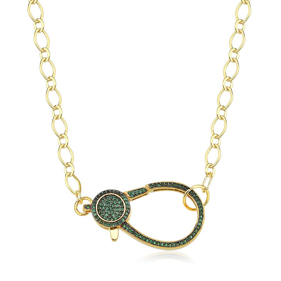 Este colar com elos de mosquetão e zircônia verde, banhado a ouro 18k, é a escolha ideal para quem procura um acessório elegante e sofisticado. O brilho vibrante da zircônia verde, aliado ao acabamento luxuoso do ouro 18k, cria um visual deslumbrante e cheio de personalidade.Com 47 cm de comprimento, o colar tem um tamanho ideal para quem busca um toque de estilo discreto e ao mesmo tempo impactante. Perfeito para ser usado tanto no dia a dia quanto em eventos especiais.