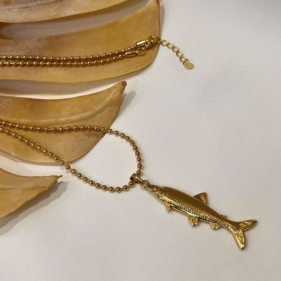 O colar longo de bolinhas com pingente de peixe dourado é uma joia encantadora que une elegância e significado.Seu design sofisticado e cheio de estilo traz o símbolo do peixe — associado à prosperidade e boas energias — tornando-o uma peça muito desejada pelas clientes. Ideal para revendedoras que buscam joias com propósito, brilho e excelente potencial de venda.