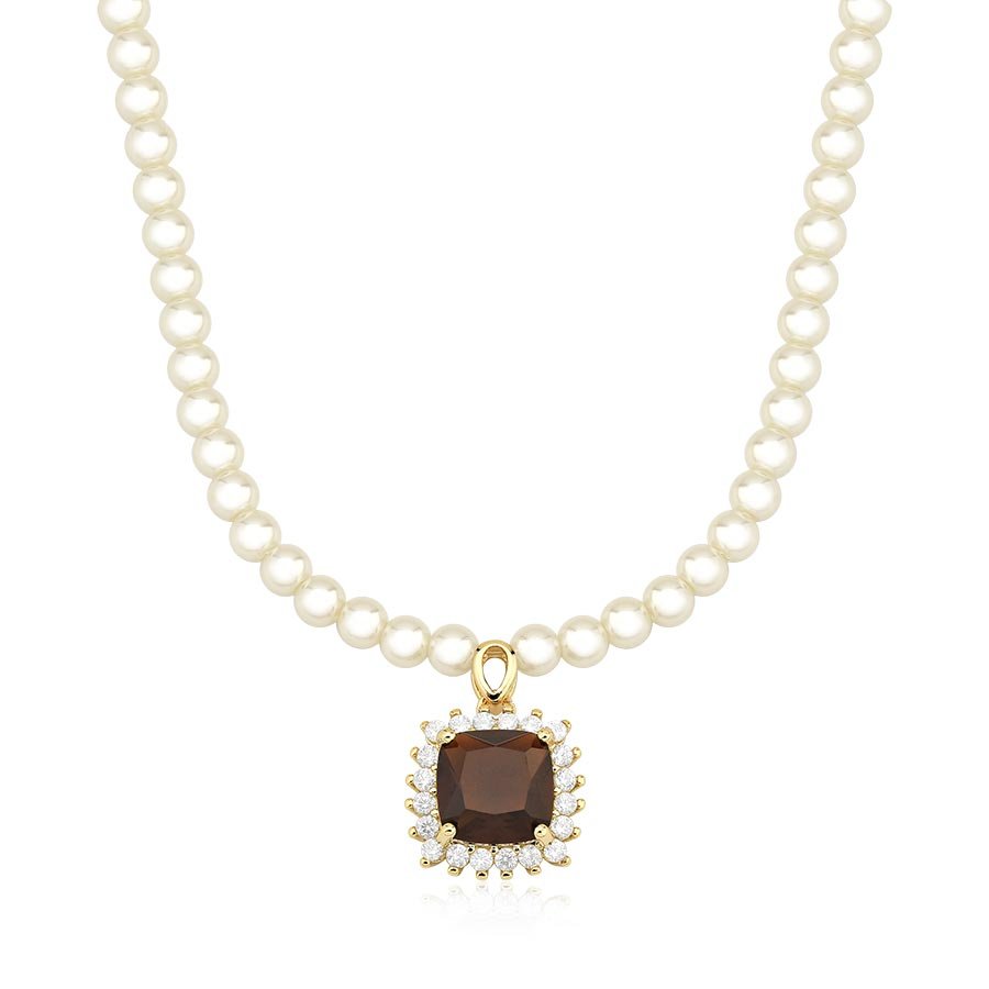 Pérolas de 4mm e pingente de zircônia marrom sofisticada.