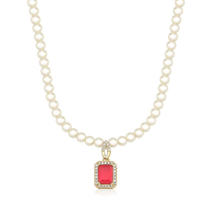 O colar de mini pérolas com pingente de zircônia rosa banhado a ouro 18K é a definição de delicadeza e elegância atemporal.Com 38+5cm e pérolas de 4mm, essa joia encanta pela suavidade do design e pelo brilho sofisticado da zircônia, criando um visual romântico e refinado.