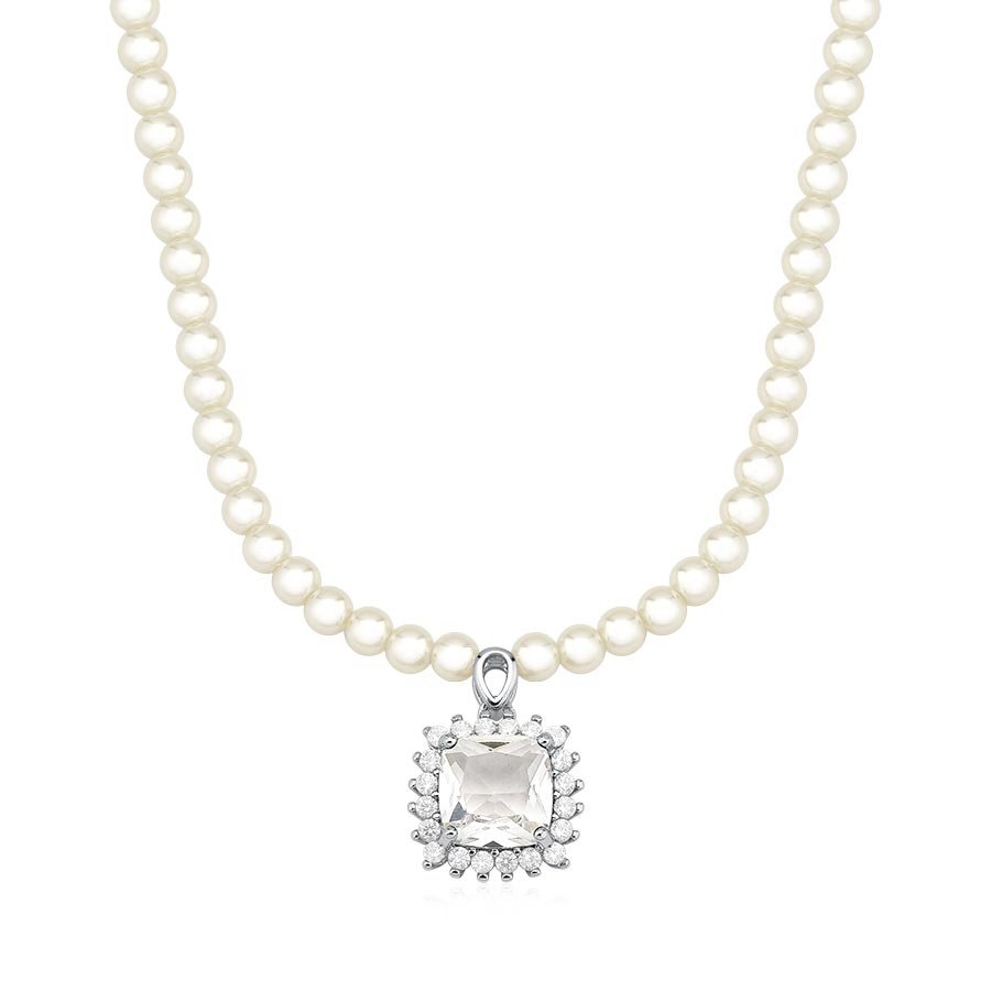 Pérolas de 4mm e pingente de zircônia cristal reluzente.