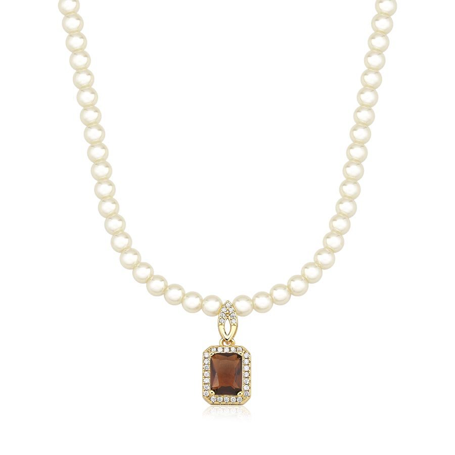 Pérolas de 4mm e pingente de zircônia marrom sofisticada.