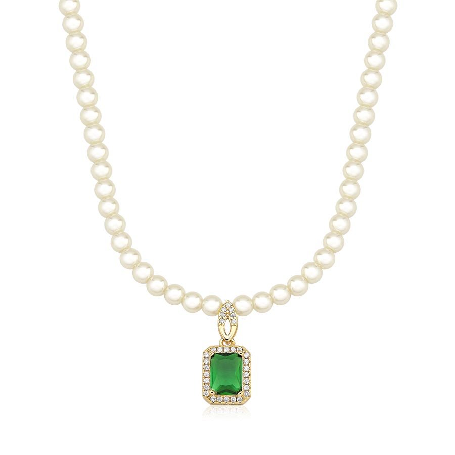 Pérolas de 4mm e pingente de zircônia verde luxuosa.