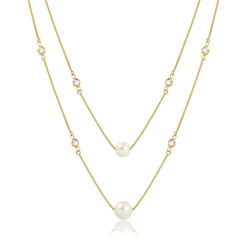 Gargantilha de Pérola Dupla Folheada a Ouro 18K