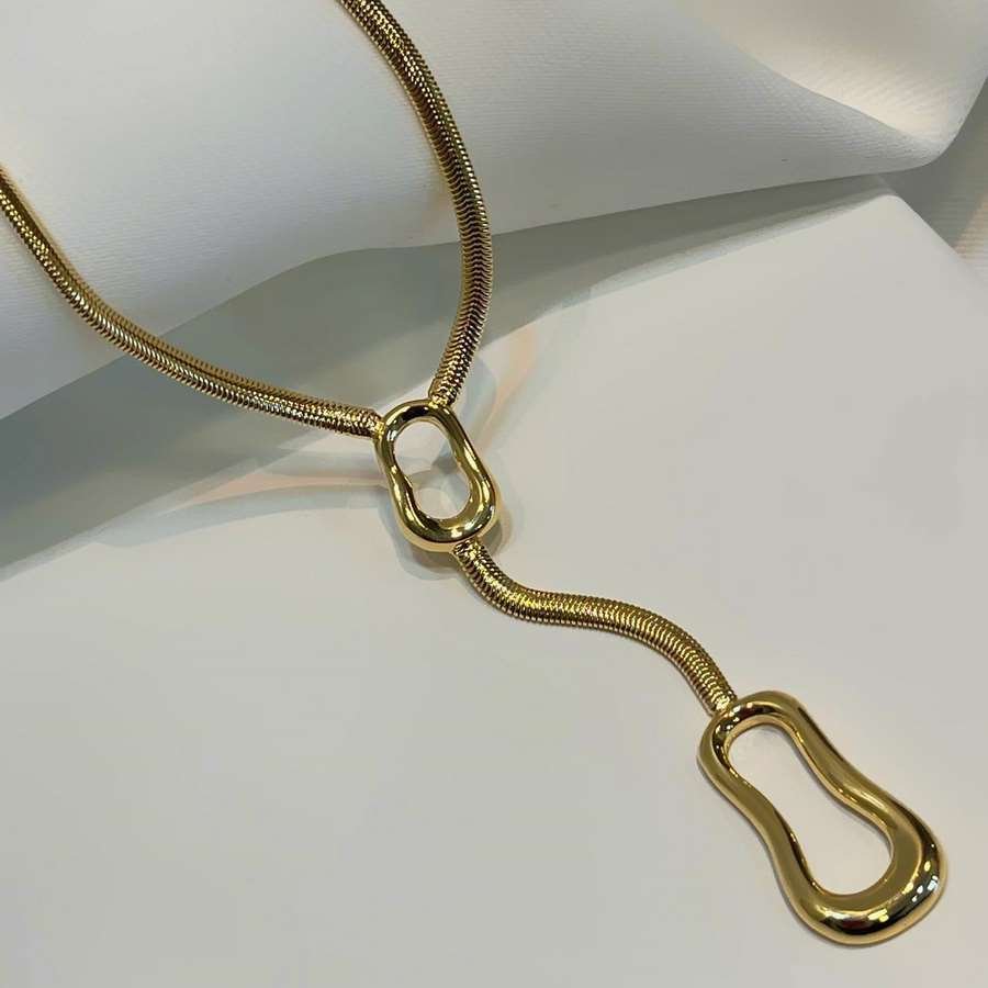 Inspirada nas formas orgânicas da natureza, a gargantilha gravata com elemento orgânico banhado a ouro 18k traz um toque moderno e sofisticado ao visual. Uma peça única que valoriza a delicadeza com um toque de originalidade.Seu comprimento total de 45cm, com extensor de 5cm e um pendente de 7cm, permite um caimento elegante e ajustável, perfeito para diversos estilos de decote.