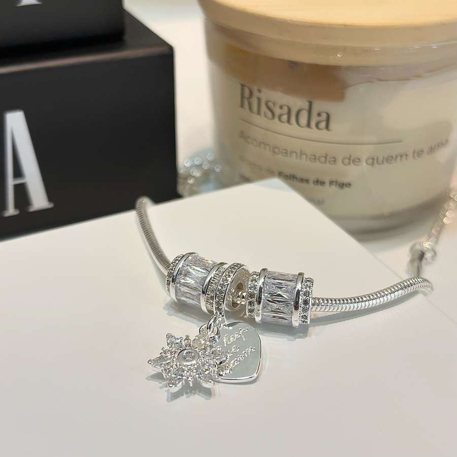 A Pulseira Berloque Cravejada Banhado a Prata é uma joia charmosa que combina brilho e delicadeza em uma peça cheia de estilo. Os berloques cravejados oferecem um toque sofisticado e garantem destaque no pulso com elegância.Com 16,5 cm de comprimento e mais 5 cm de extensor, ela proporciona um ajuste confortável e seguro. Ideal para usar sozinha ou compor com outras pulseiras para um visual mais personalizado.