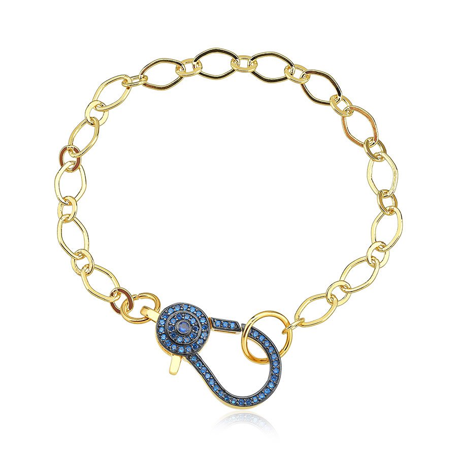 Esta pulseira com mosquetão de zircônia azul banhada a ouro 18k é a escolha perfeita para quem busca sofisticação e um toque de cor. A zircônia azul adiciona um brilho único e encantador, criando uma peça cheia de charme e elegância.Com 18 cm de comprimento, a pulseira se ajusta com perfeição ao pulso, oferecendo um encaixe confortável para o uso diário ou para ocasiões especiais.