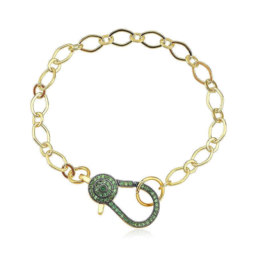 Esta pulseira com mosquetão de zircônia verde banhada a ouro 18k é uma peça que une beleza e sofisticação em um design encantador. A zircônia verde, com seu brilho vibrante, traz um toque de frescor e estilo para qualquer look.Com 18 cm de comprimento, a pulseira oferece um ajuste perfeito ao pulso, proporcionando conforto e versatilidade para ser usada em diversas ocasiões.