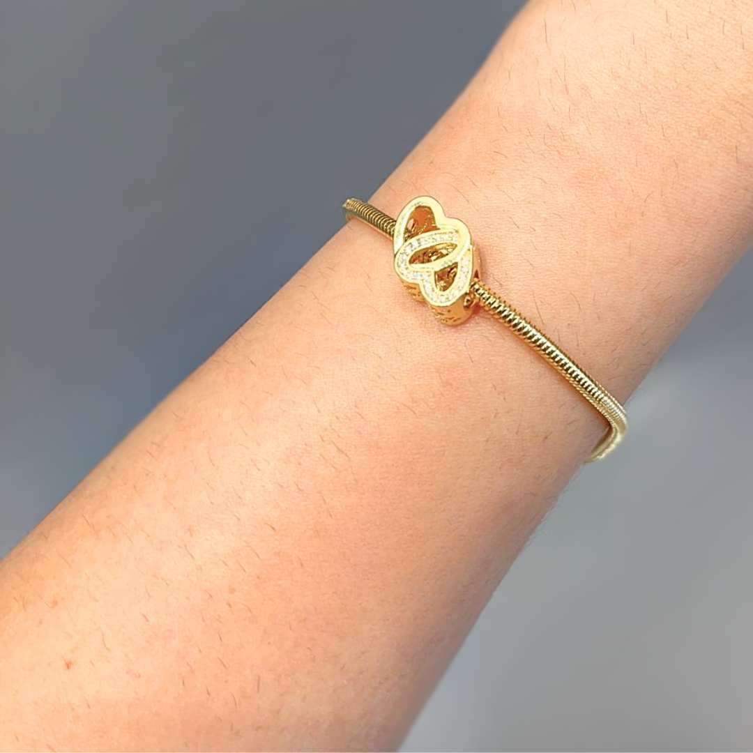 A Pulseira Coração Duplo Cravejado Banhado a Ouro 18k é uma joia delicada e cheia de elegância, projetada para realçar o seu estilo de forma única. Com um design encantador, a peça é banhada a ouro 18k, garantindo um acabamento de alta qualidade e resistência. Os corações duplos cravejados conferem um toque de sofisticação e brilho, tornando-a perfeita para qualquer ocasião.Com tamanho ajustável de 16,5 + 5 cm, essa pulseira é versátil e se adapta facilmente a diferentes tipos de pulso. Seu fechamento seguro e confortável proporciona um uso prático e agradável, garantindo que você aproveite sua beleza por muito tempo.