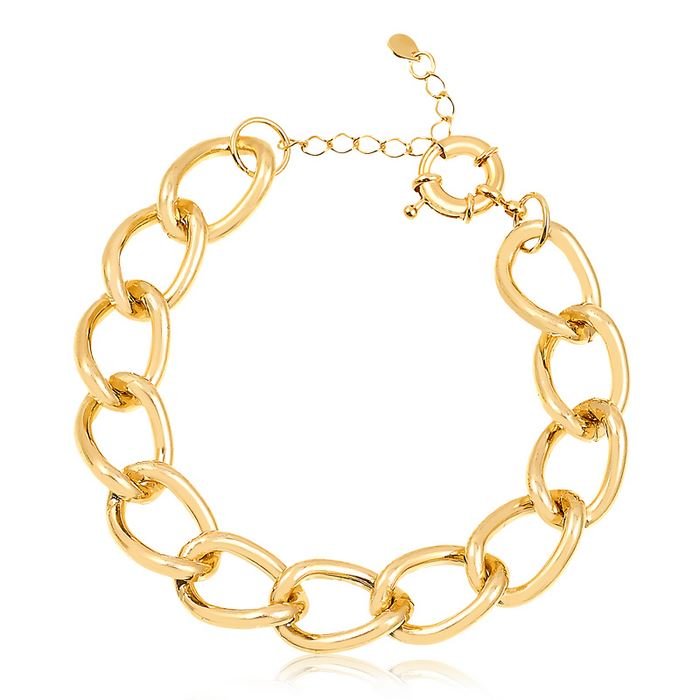 Descubra a versatilidade elegante da nossa pulseira de elos dourada. Esta peça é um verdadeiro clássico, perfeita para adicionar um toque de sofisticação e estilo a qualquer look, seja casual ou formal.Com um tamanho de 16,5 cm mais um extensor de 5 cm, esta pulseira oferece um ajuste confortável e personalizado para o seu pulso, garantindo que você possa usá-la com confiança em todas as ocasiões.