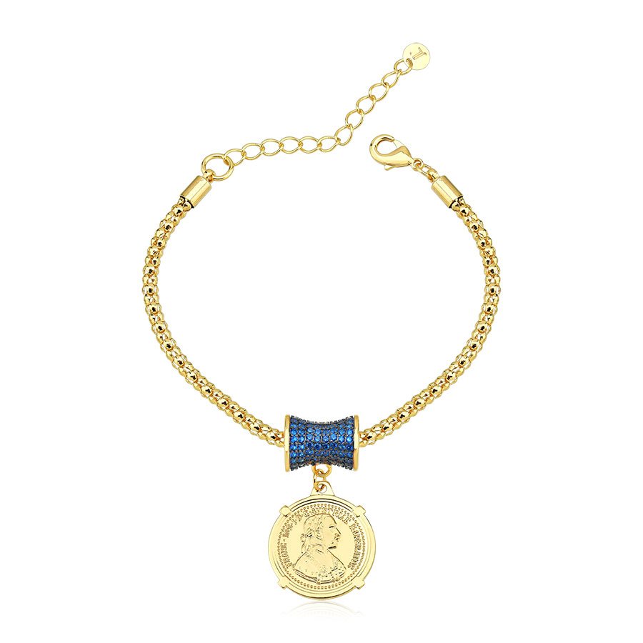 A pulseira com detalhe de zircônia azul e medalha banhada a ouro 18k é uma peça que exala elegância e sofisticação. O brilho da zircônia azul combinado ao toque dourado do ouro 18k cria um contraste impecável, tornando esta pulseira um acessório ideal para quem busca um toque de cor e brilho no visual.Com 17 cm de comprimento e 5 cm de extensão, a pulseira oferece um ajuste perfeito, e sua medalha de 2 cm adiciona um charme único à peça. Seu design refinado a torna versátil, sendo uma excelente escolha tanto para o dia a dia quanto para ocasiões especiais.