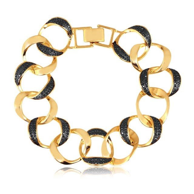 A Pulseira Folheada Ouro 18K Elos - Cravejada com Zircônia Black é uma peça deslumbrante que combina elegância e estilo em uma única pulseira. Com um comprimento de 17,0cm, ela se ajusta perfeitamente ao seu pulso, proporcionando um visual encantador e sofisticado.Os elos cravejados com zircônia black adicionam um toque de brilho e glamour a esta pulseira, tornando-a uma escolha perfeita para ocasiões especiais ou para adicionar um toque de sofisticação ao seu visual diário.