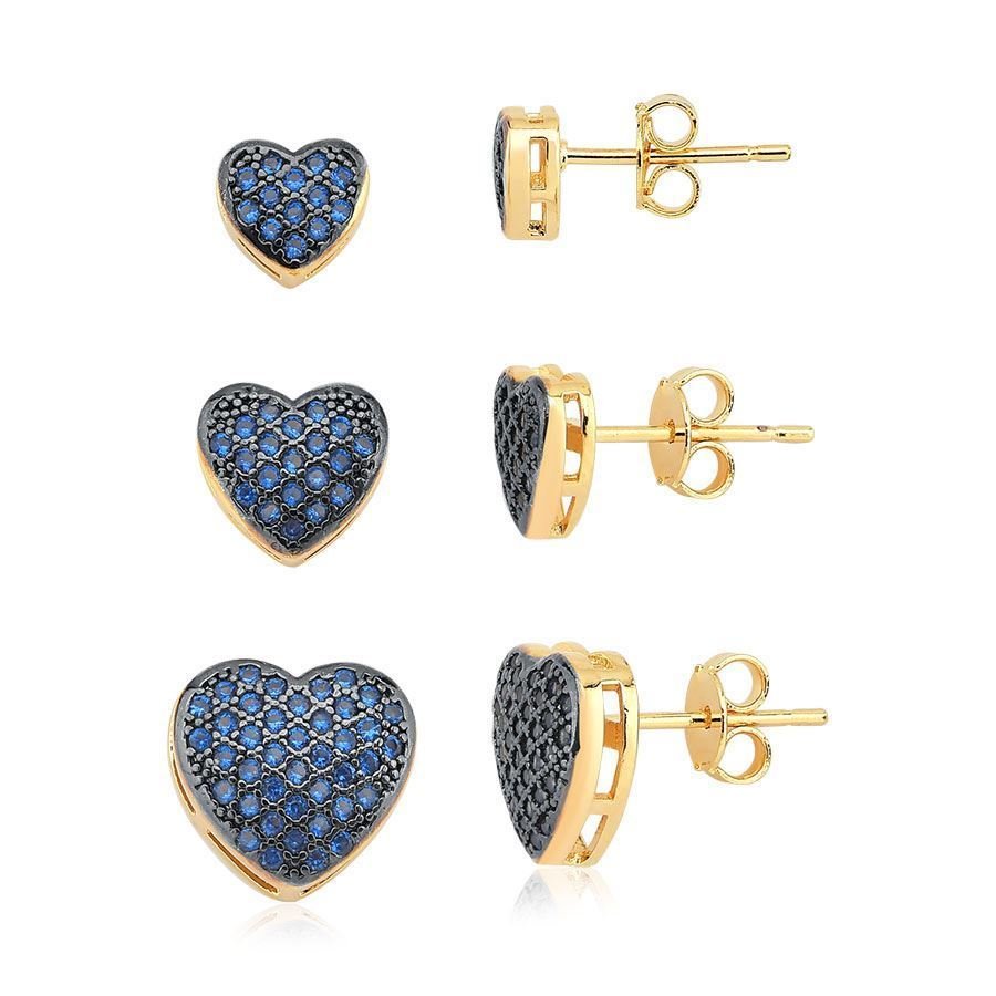 Este trio de corações cravejados com cristais azuis e banhado a ouro 18k traz um toque de frescor e sofisticação ao seu visual. A cor vibrante dos cristais azuis, combinada com o brilho do ouro, cria um efeito encantador que destaca qualquer look.Com opções de tamanho de 5mm, 7mm e 1cm, você pode escolher o que melhor se adapta ao seu estilo, seja para um look mais discreto ou uma produção mais audaciosa e marcante.